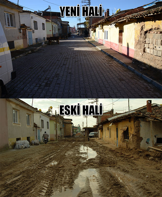 Başkan Alha, yaptığı hizmetleri önceki ve sonraki hali diye resimlemiş. Bize bu resimleri bir bir gösterirken bir yandan da anlatıyordu. Resimleri aşağıda görebilirsiniz.